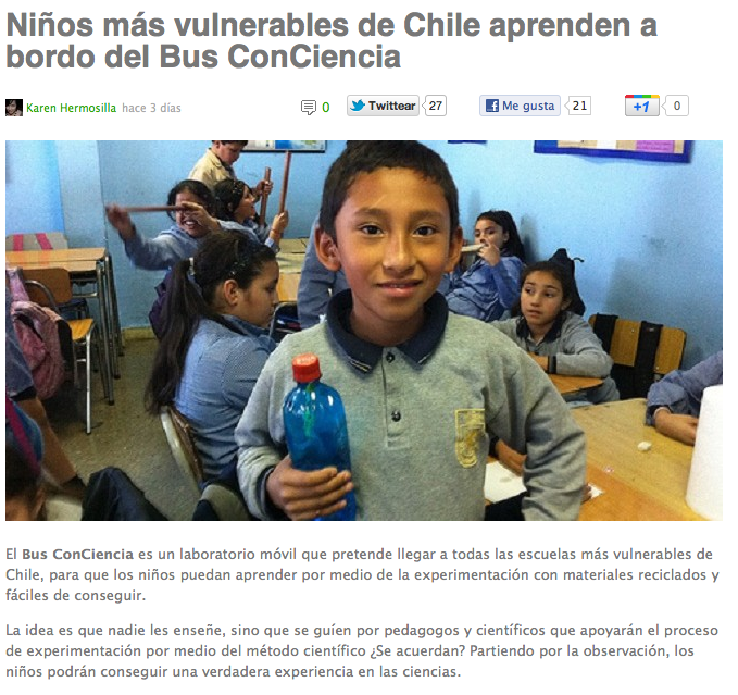 Innovacion.cl escribe sobre el Bus ConCiencia